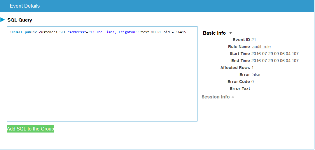 Amazon Aurora data audit software by DataSunrise enables to get a full picture of database activity. Knowing who, why and when queried your database is more than just helpful, especially when working in the cloud. Moreover, continual data auditing plays an important role in database security as well. When paired with SIEM system, DataSunrise helps not only to reveal data theft that has already occurred, but to detect data breach preparations beforehand.