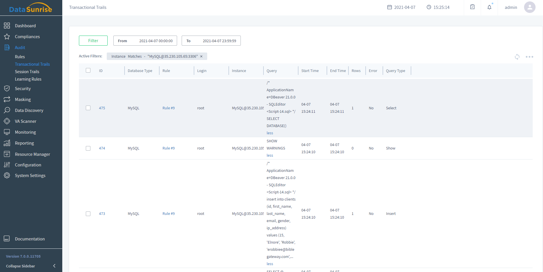 Real-time access and activity control to ensure malicious database activity identification, automatic detection and instant blocking of statements containing SQL injections.