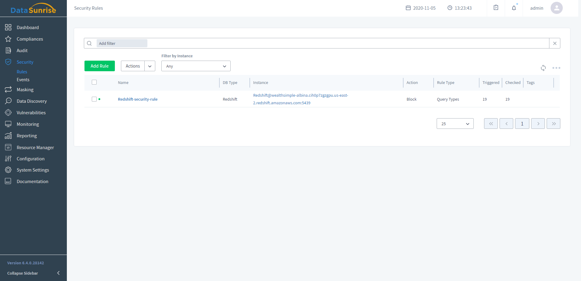 Schützen Sie Ihre Amazon Redshift-Datenbank mit DataSunrise
