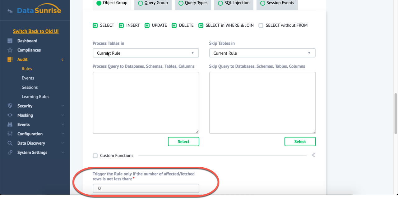 So können Datenbankaktivitäten für Abfragen jeder Art, die Sie auswählen, und für jede Anzahl von Zeilen, die Sie als normal oder anderweitig betrachten, auditiert werden. Weitere Details hierzu finden Sie im Benutzerhandbuch von DataSunrise. Bitte kontaktieren Sie uns für weitere Informationen.