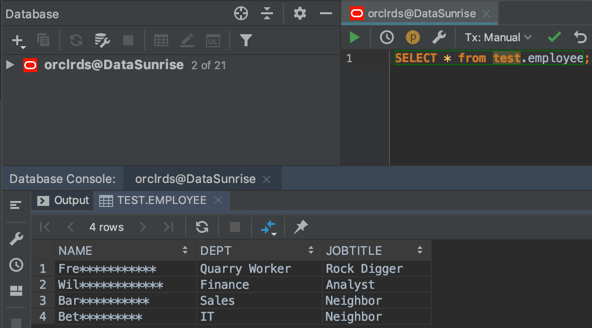 DataSunrise Maskierung ist eine herausragende Fähigkeit der Datenbanksicherheitssuite. DataSunrise kann Daten nach Ihrer eigenen definierten Methode der Verschleierung maskieren: