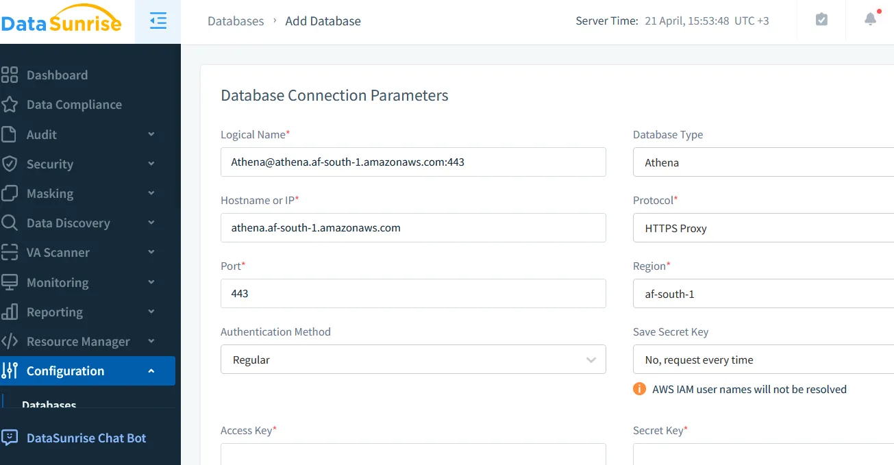 Autonome Compliance mit DataSunrise für Amazon Athena