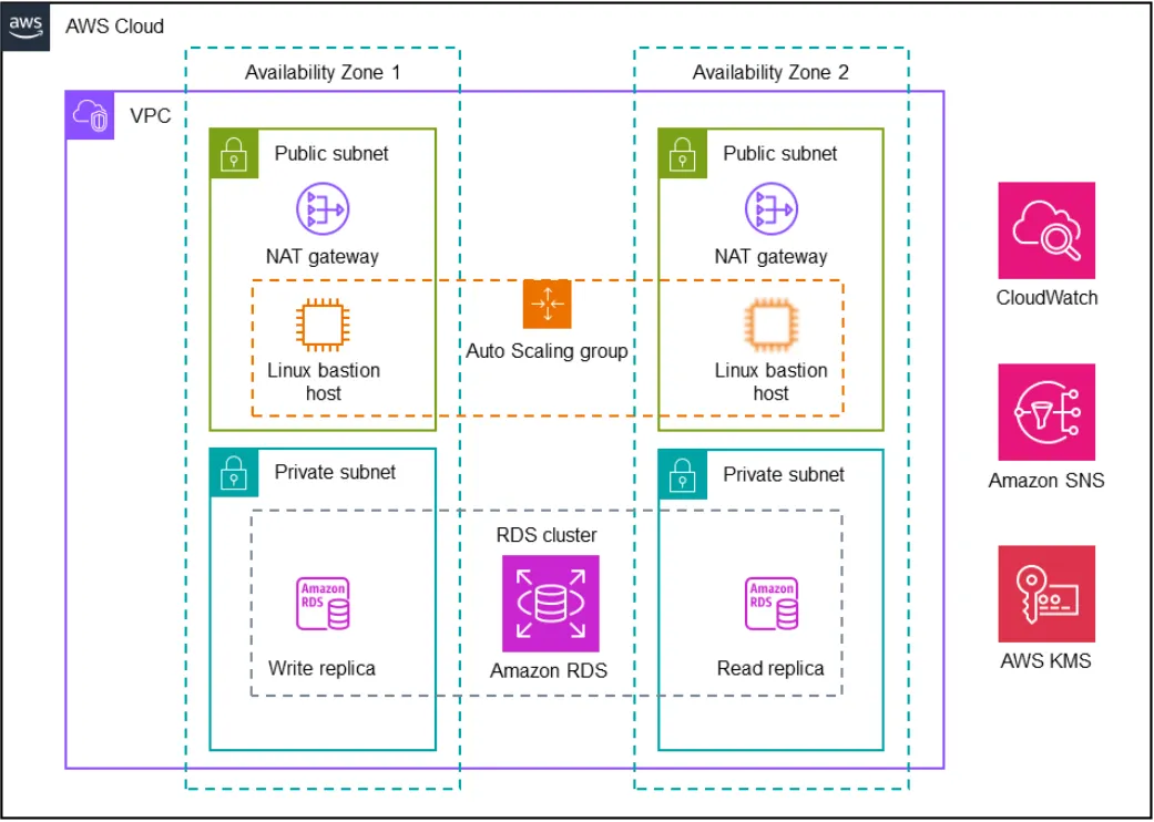 Amazon RDS bietet native Protokollierung und Ereignisüberwachung, einschließlich: