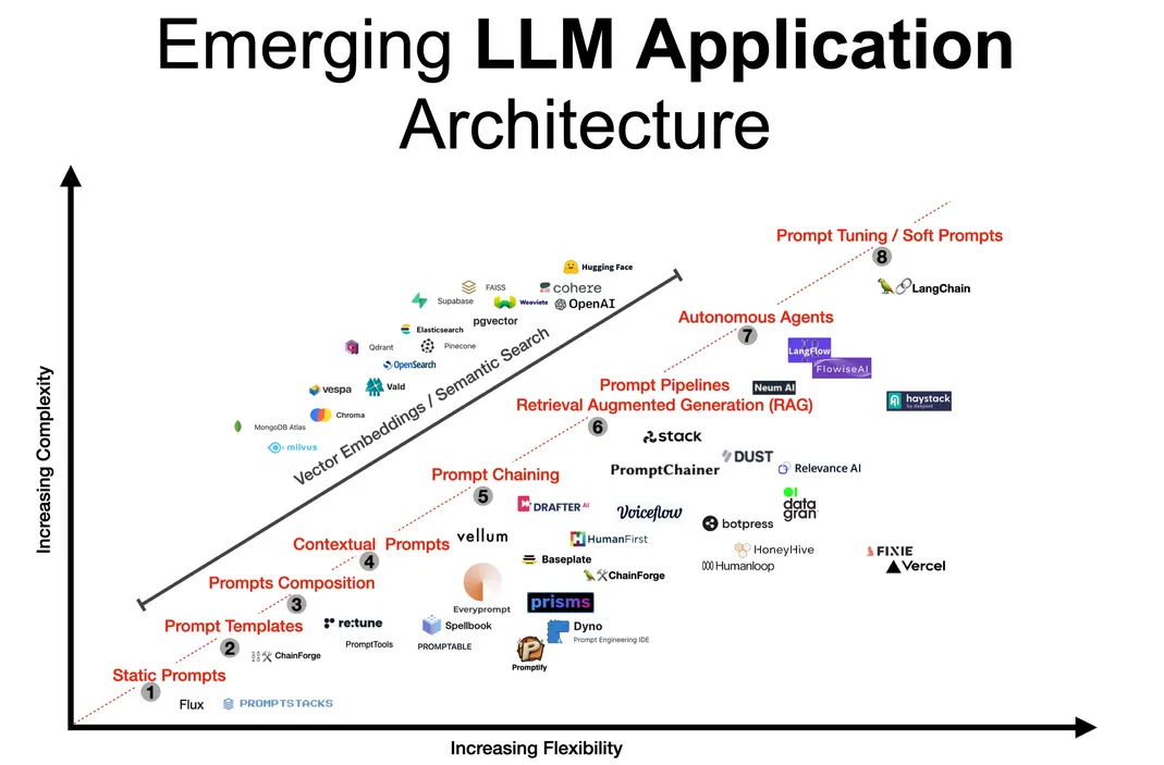 Prompts durchlaufen mehrere Systeme – beginnend bei den Benutzeroberflächen, gefolgt von optionalen Vorverarbeitungsfiltern, dem Modell selbst und schließlich über nachgelagerte APIs wie SQL-Generatoren.