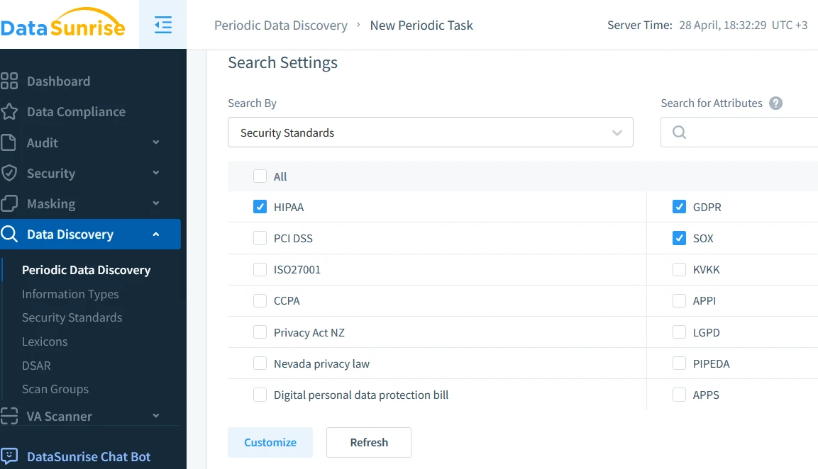 Der Compliance-Autopilot von DataSunrise kalibriert kontinuierlich Regeln in Übereinstimmung mit Rahmenwerken wie GDPR, HIPAA und PCI DSS und eliminiert manuelle Abweichungen.