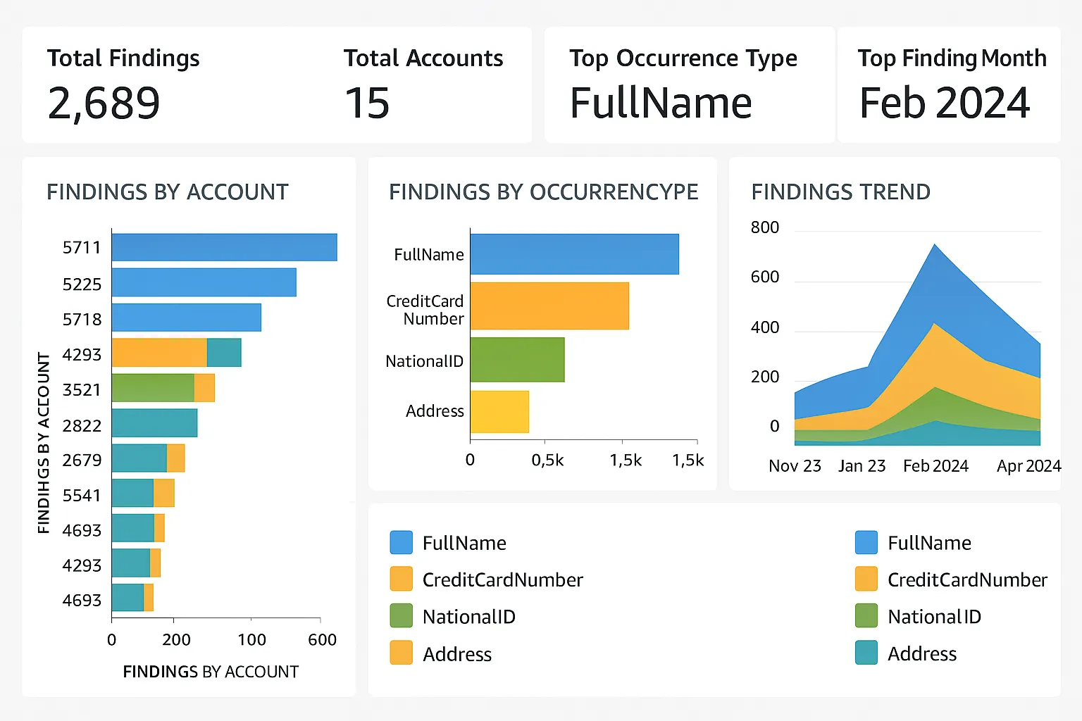 Macie identifiziert automatisch PII, PHI und Finanzdaten in S3-Buckets, die mit Athena verbunden sind. Es verwendet maschinelles Lernen, um sensible Daten zu kennzeichnen und so die Durchsetzung nachgelagerter Richtlinien zu verbessern.