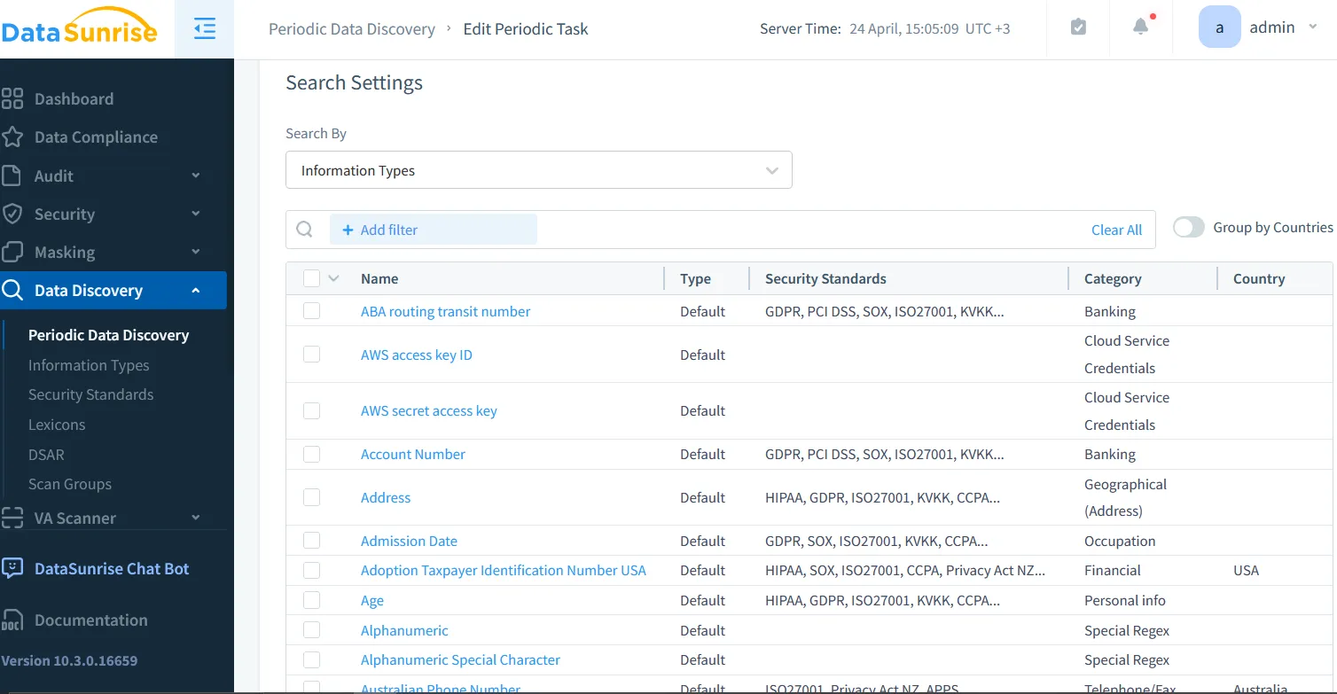 Mithilfe von ML-gestützten Audit-Richtlinien bietet DataSunrise Autonome Compliance-Orchestrierung, die sich an sich verändernde Bedrohungen und Konformitätsrahmen wie GDPR, CCPA, SOX und HIPAA anpasst. Diese Regeln erkennen verdächtiges Verhalten und lösen in Echtzeit entsprechende Aktionen aus.