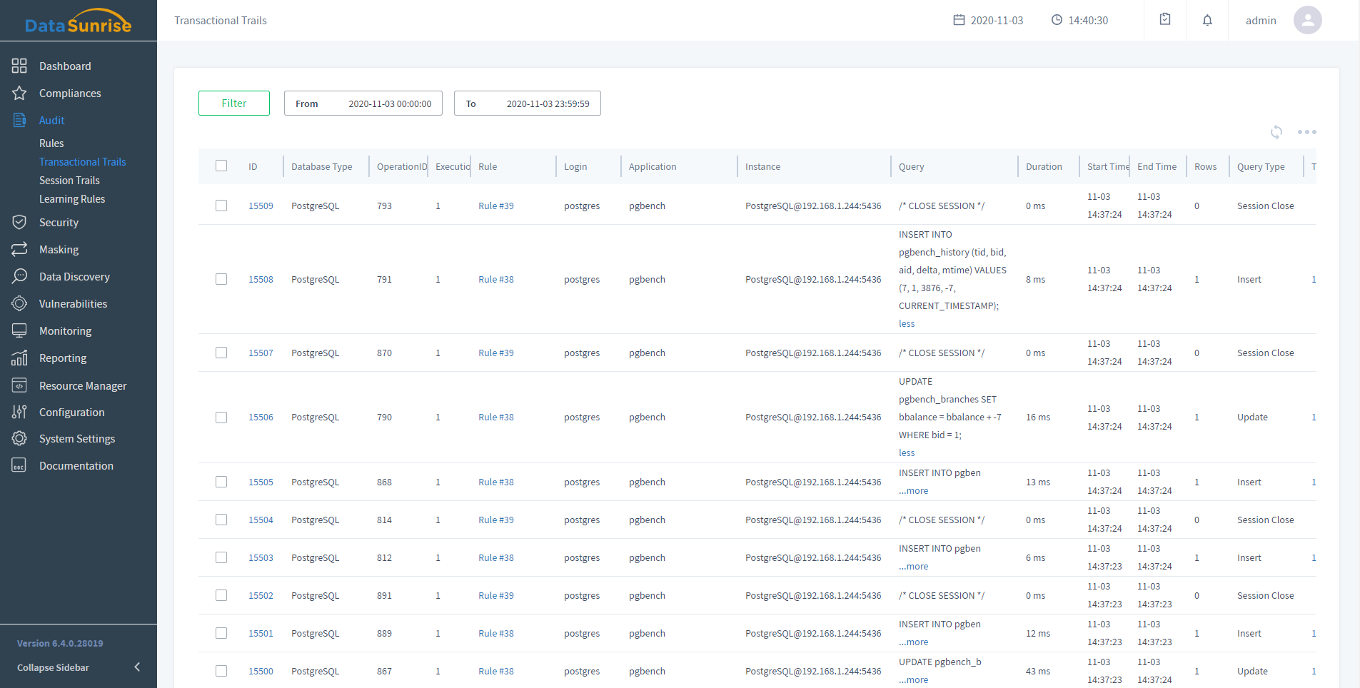 Estas características le permiten obtener resultados de auditoría recopilados por las herramientas de auditoría nativas de PostgreSQL. Puede ser utilizado en la base de datos PostgreSQL porque DataSunrise no soporta el sniffing en la base de datos RDS