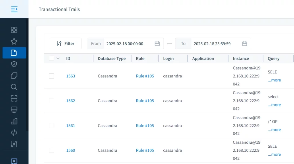 Bien que les capacités d’audit natives de ScyllaDB soient utiles, DataSunrise renforce la journalisation d’audit pour les cas d’utilisation en entreprise. Il offre une surveillance en temps réel, un filtrage avancé et des rapports conformes aux normes.