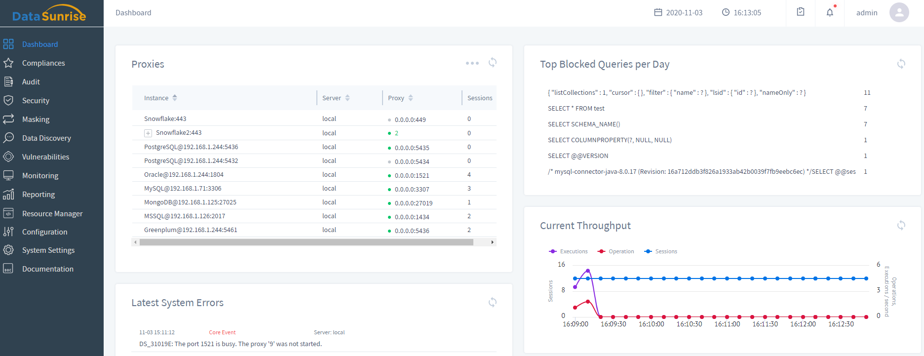 Contrôle en temps réel des accès et des activités pour garantir l'identification des activités malveillantes sur les bases de données, la détection automatique et le blocage instantané des déclarations contenant des injections SQL.