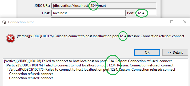 Lors de la connexion à une base de données Vertica via l’application DBeaver, un problème a été détecté (ce-4.2.2). Si vous entrez un port non standard, par exemple 55555, l’outil essaie de se connecter de toute façon au port par défaut 5433.