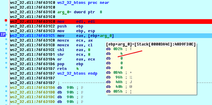 Ensuite, vous devez poser un point d’arrêt sur l’appel de la fonction “htons”.