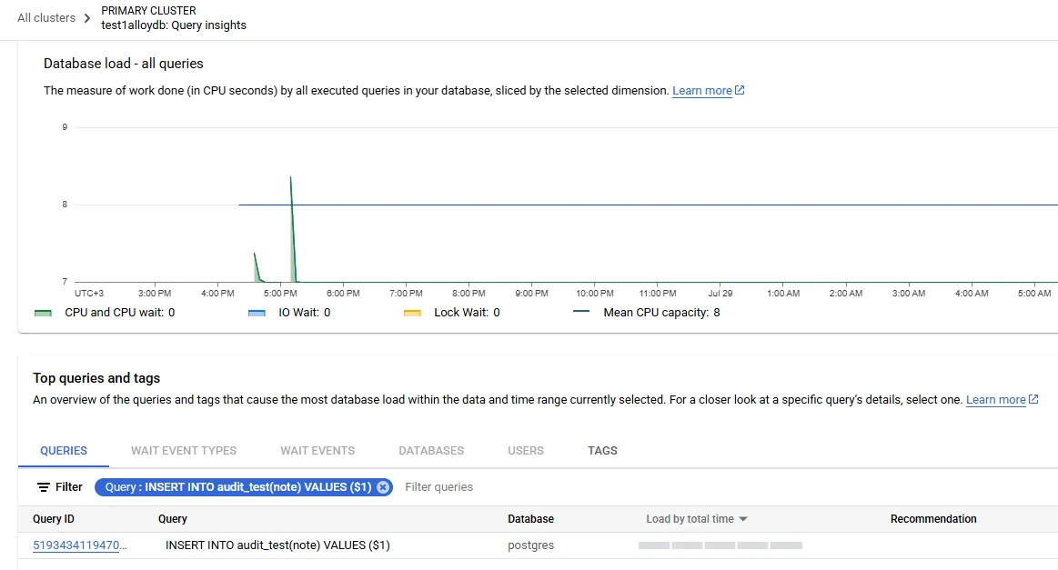 CREATE EXTENSION IF NOT EXISTS pgaudit; ALTER SYSTEM SET pgaudit.log = 'read, write, ddl'; SELECT pg_reload_conf(); - Export to Cloud Logging – By default audit entries land in Cloud Logging under the resource type