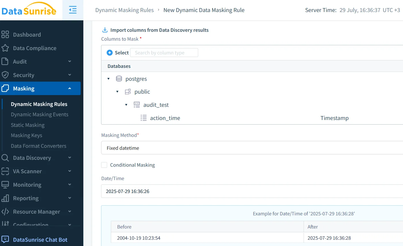 Native logs are great, but modern security stacks crave context—user reputation, data classification, masking status, and behavior baselines. DataSunrise slides in as an inline proxy or agent, capturing row‑level audit logs, applying risk‑adaptive dynamic masking so analysts see only obfuscated data, running data discovery jobs that tag new columns the moment they appear, and offering LLM & ML tools that learn normal query shapes and flag outliers. Because DataSunrise can read pgAudit statements, you’re not duplicating workload—just enriching it.