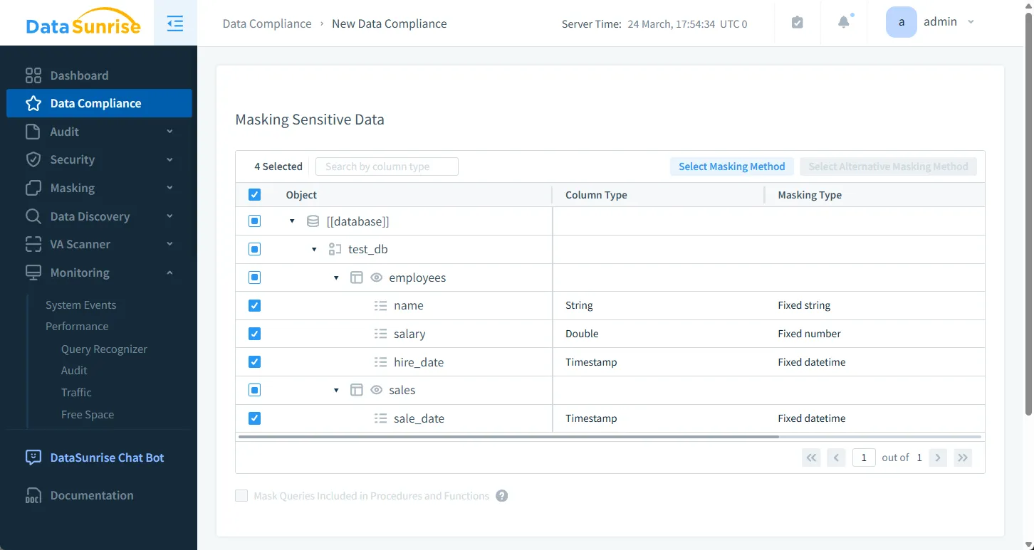 DataSunrise’s Dynamic Data Masking ensures sensitive data is masked based on real-time access patterns and user roles, enabling zero-touch protection.