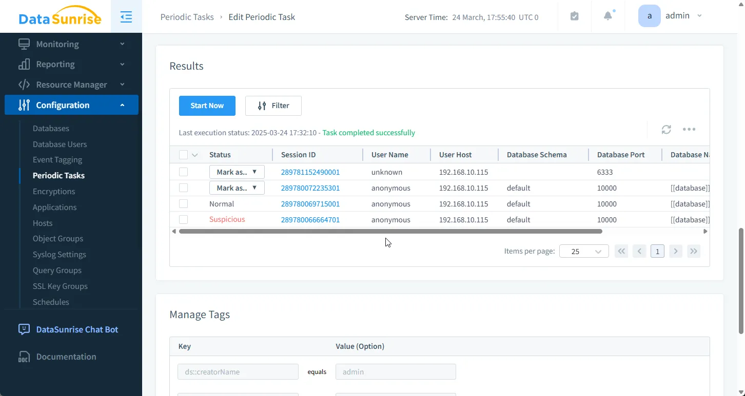 Leverage DataSunrise's Behavioral Analytics to identify abnormal data access patterns, reducing the risk of insider threats. Using machine learning audit rules and anomaly detection, DataSunrise tracks user behavior and automatically adjusts security policies to prevent unauthorized actions.