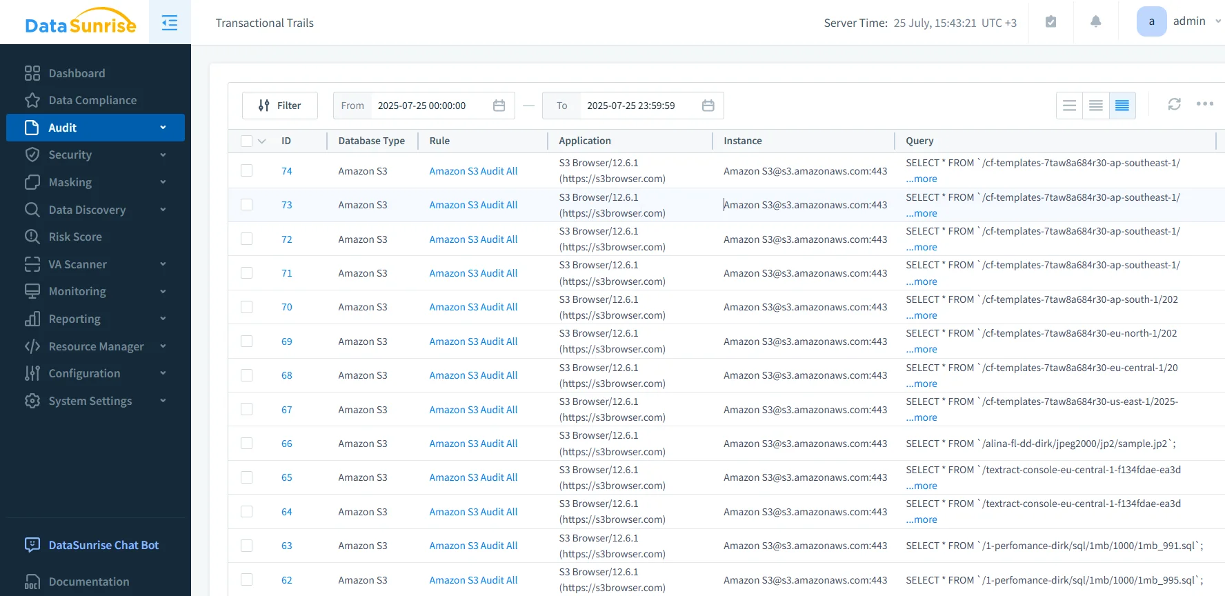 Data Audit in Amazon S3 DataSunrise