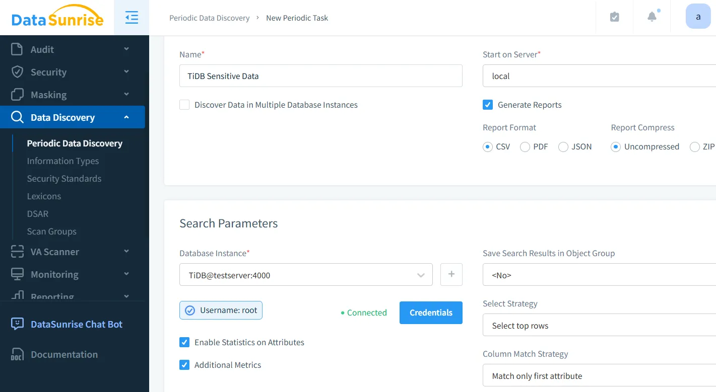 DataSunrise's sensitive data discovery capabilities help organizations identify and protect confidential information within their TiDB databases. This feature is crucial for maintaining compliance with data protection regulations and ensuring proper data handling practices.