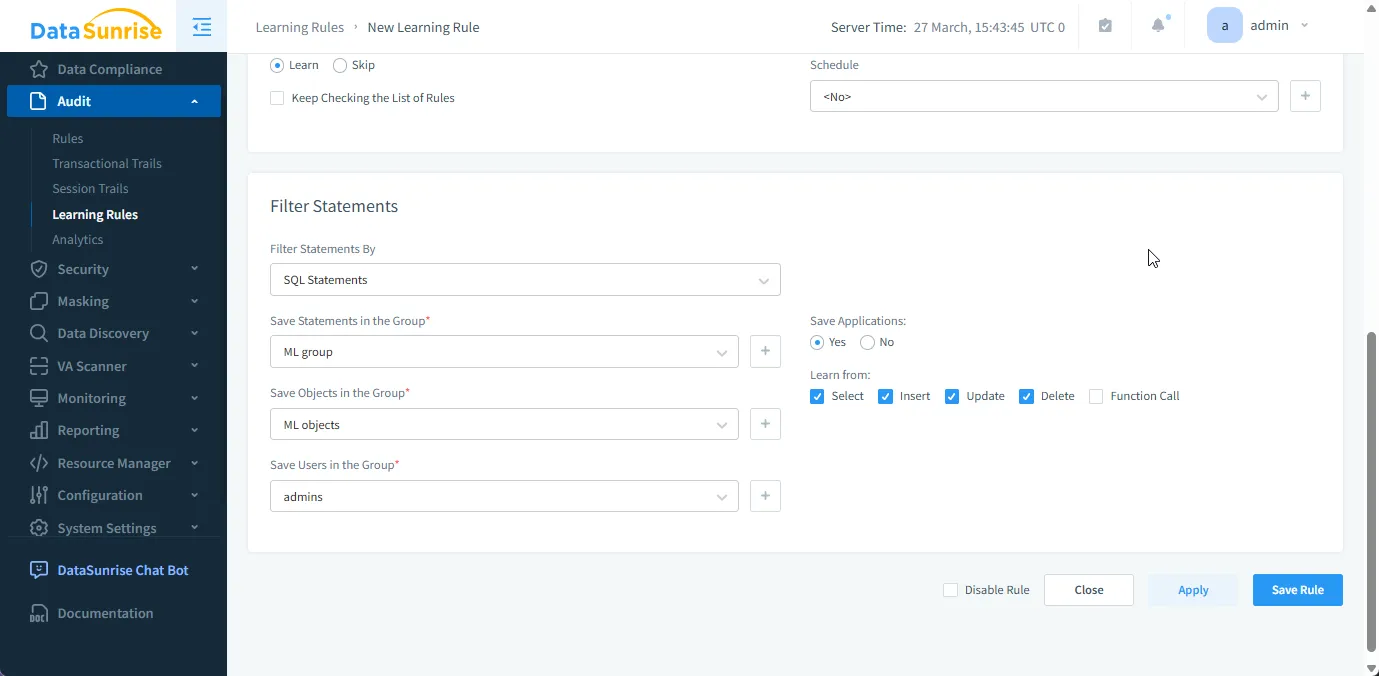 Unlike solutions that require constant manual tuning, DataSunrise delivers continuous compliance alignment through intelligent automation. The platform dynamically adapts security policies across all data types and storage solutions, ensuring comprehensive protection with minimal administrative overhead.