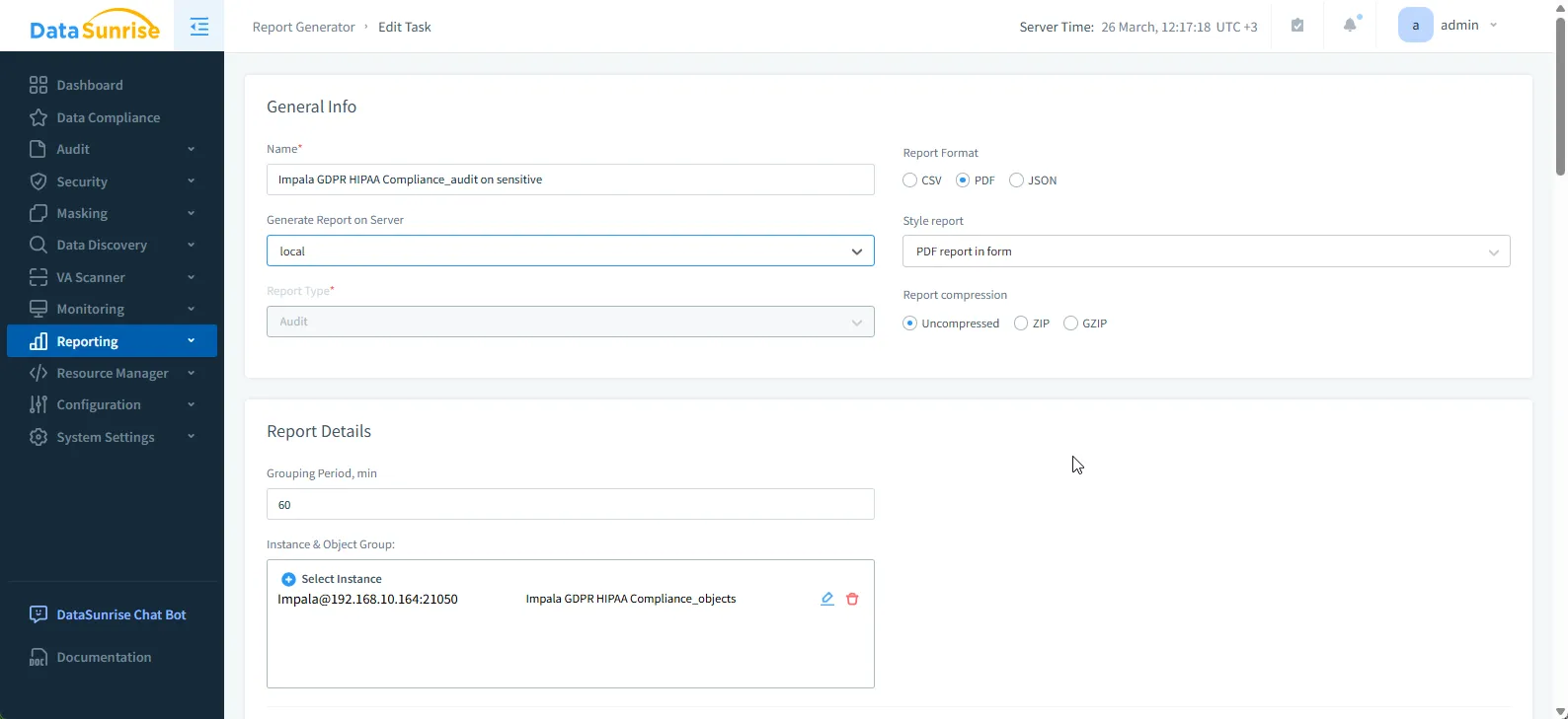 DataSunrise automates compliance reporting for key frameworks, ensuring that your Impala environment meets regulatory standards without manual intervention. With built-in compliance templates and automated reports, you can generate detailed compliance documentation effortlessly.
