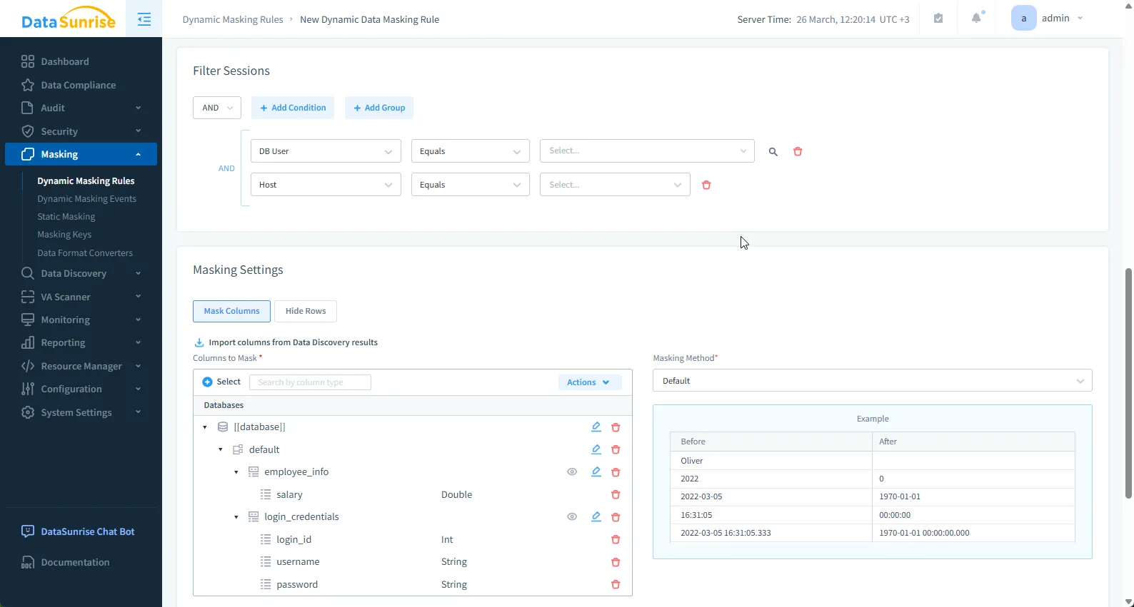 DataSunrise offers dynamic data masking and column-level encryption, far beyond Impala’s native capabilities. With DataSunrise, you can protect sensitive data in real-time, applying policies that mask or encrypt data based on user roles or access permissions.