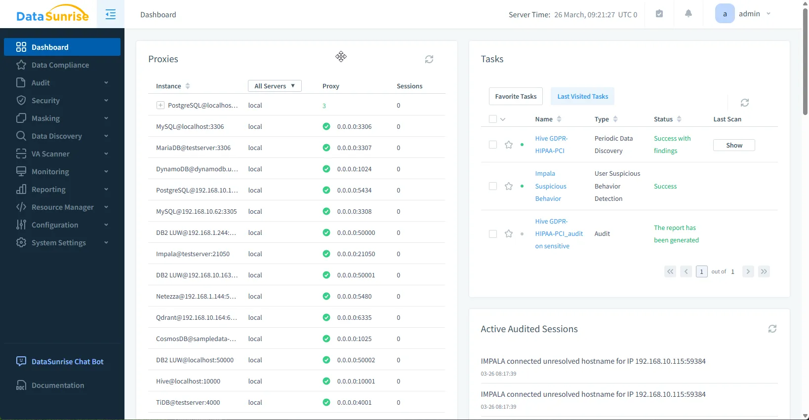 DataSunrise provides a centralized compliance management platform that works across all your data environments, including Impala, SQL, NoSQL, and cloud-based systems. This unified approach simplifies policy enforcement and ensures consistency in data protection across all platforms.