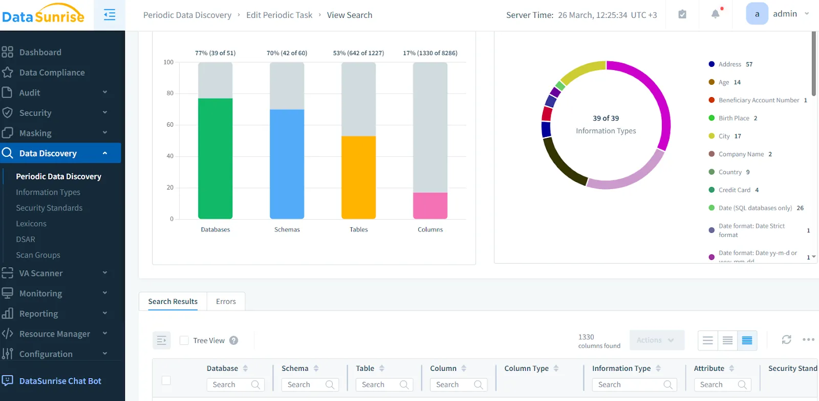 Using NLP Data Discovery and OCR capabilities, DataSunrise scans across schemas to classify: