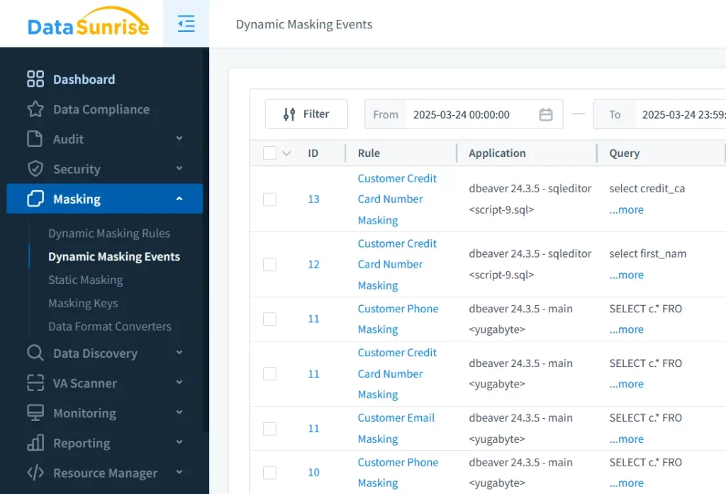 DataSunrise introduces dynamic masking to YugabyteDB environments. Sensitive fields like credit_card_number or ssn can be masked on-the-fly based on user roles.
