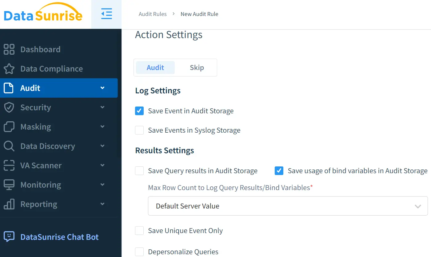 This ensures audit logs are continuously recorded and accessible for compliance verification. More details can be found in the AWS MySQL Audit Plugin and DataSunrise Audit Logs.