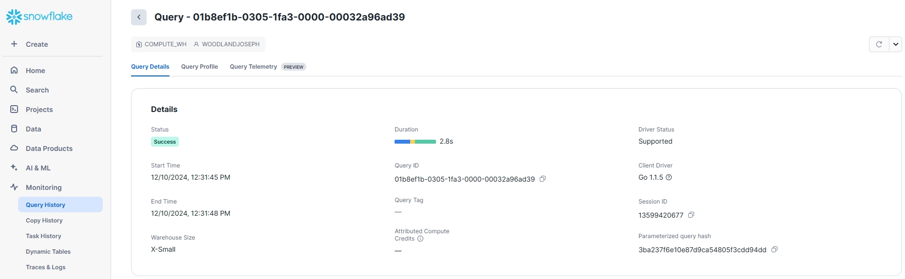 - QUERY_HISTORY: Captures details about executed queries