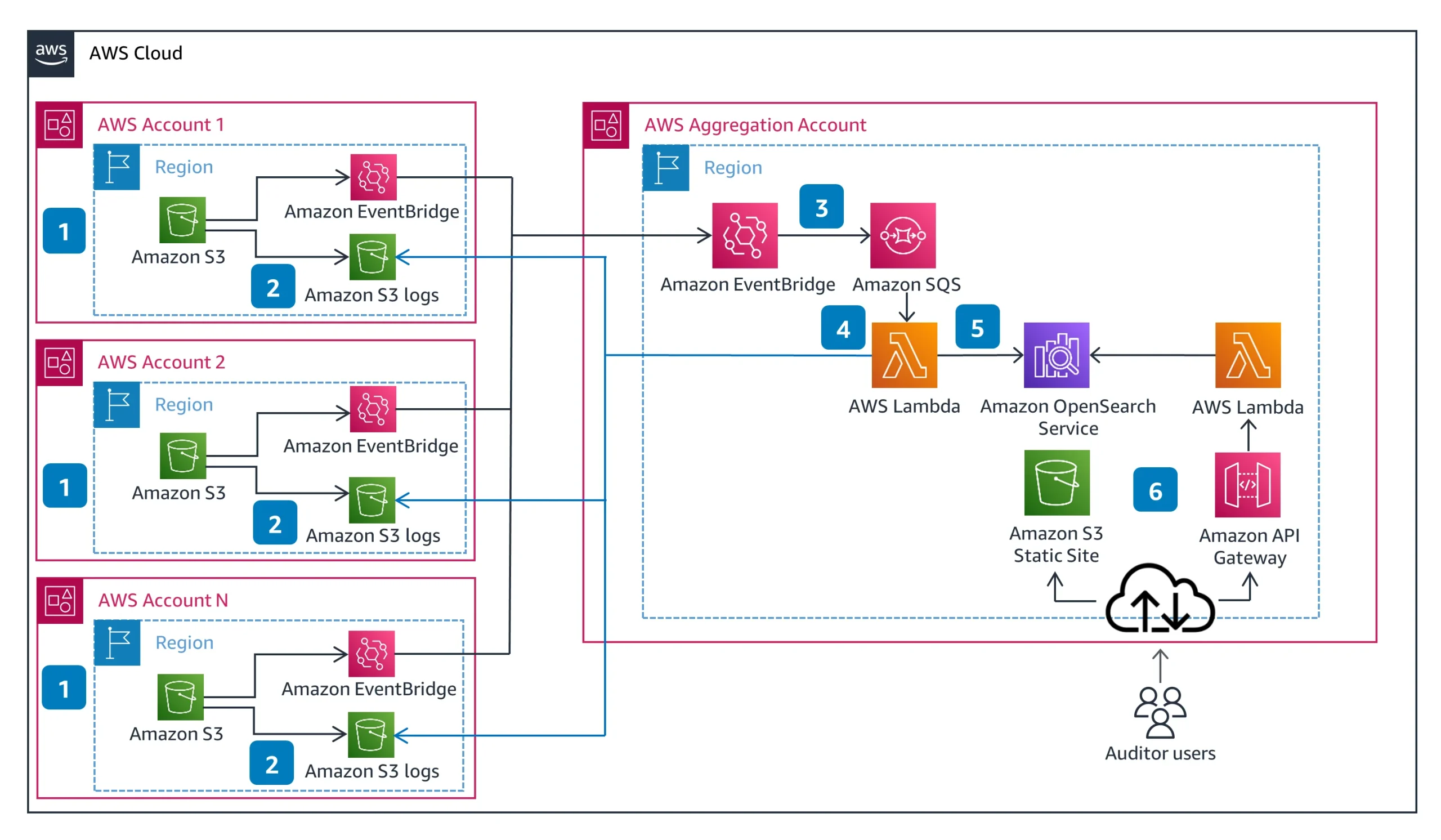 - CloudTrail logs from all S3 buckets across accounts
