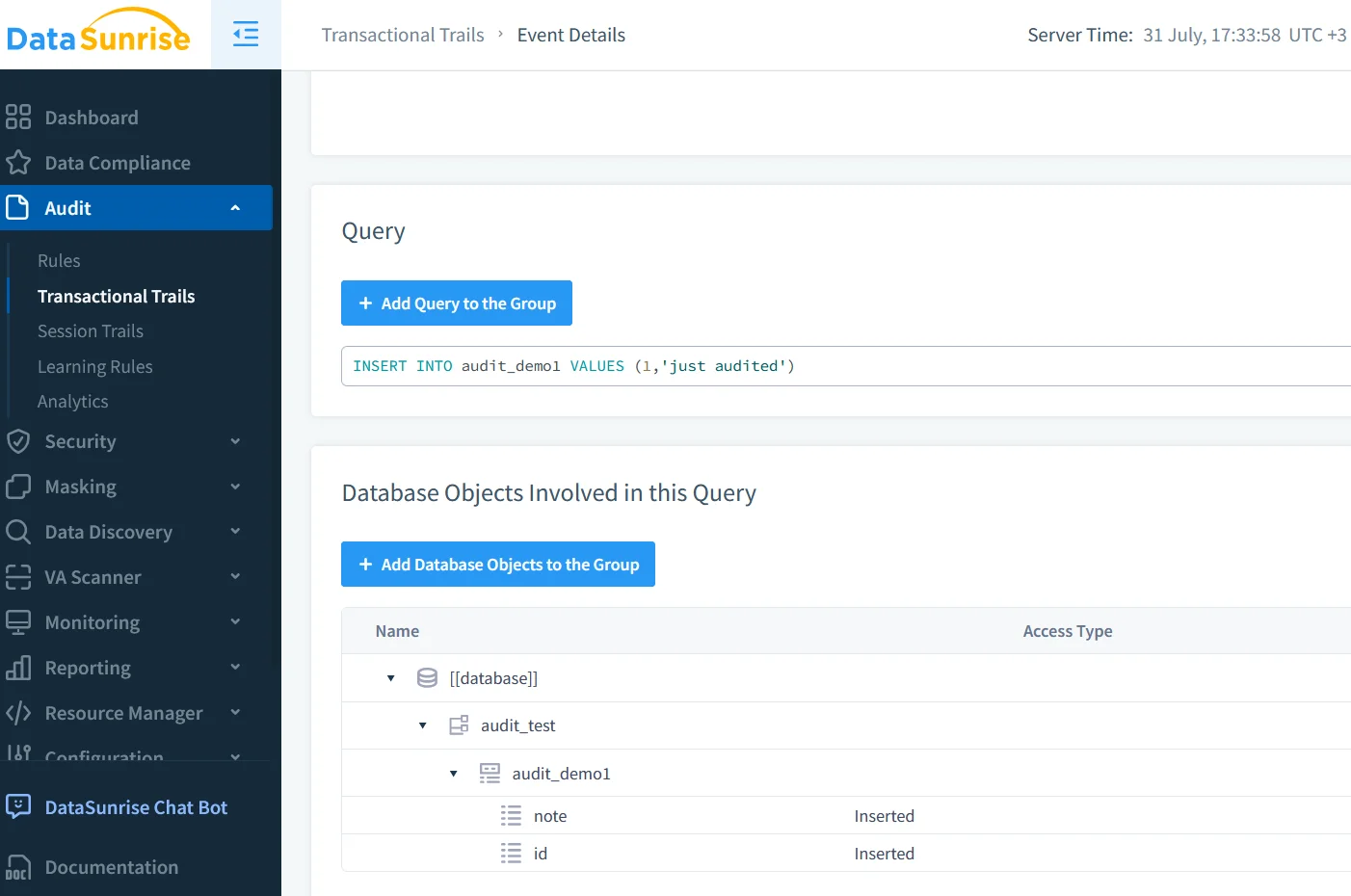 While the native plugin delivers raw events, DataSunrise Audit adds policy layers, self‑service dashboards, and machine‑learning‑driven baselines. A minimal setup involves:
