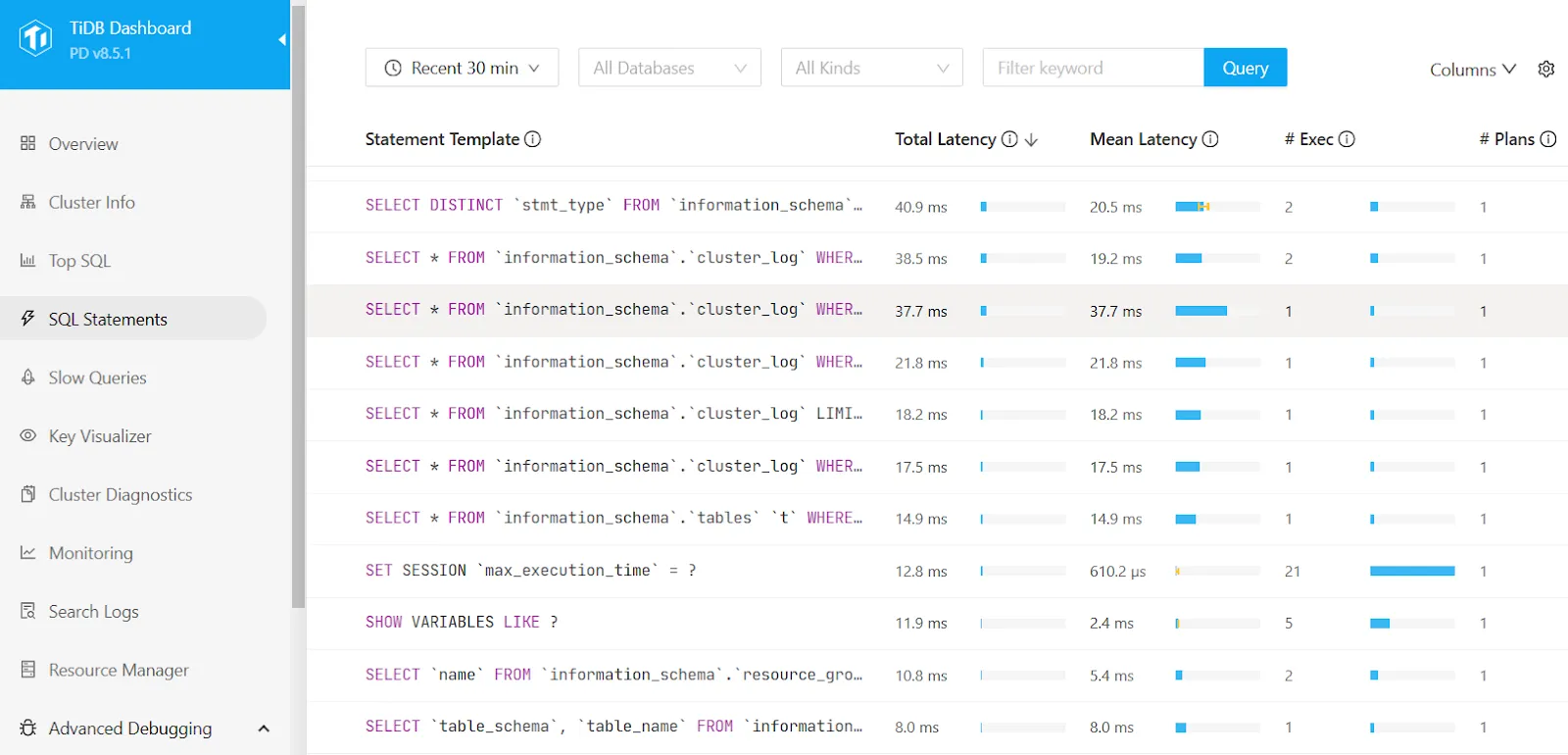 By utilizing these logging and monitoring mechanisms, you can gain deep insights into your TiDB cluster's performance, diagnose issues, and optimize database operations.