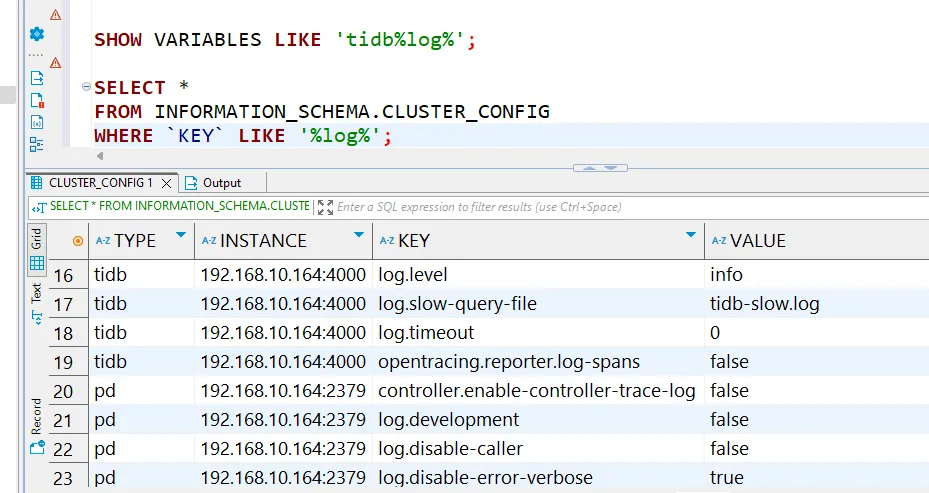 FROM INFORMATION_SCHEMA.CLUSTER_CONFIG