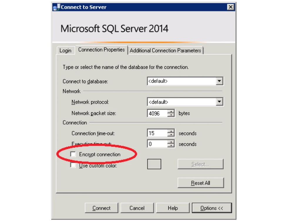 The key trait of Microsoft SQL Server is that its main client application, SQL Server Management Studio, always requires encryption even if Encrypt connection checkbox is unchecked.